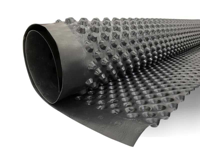 • Профилированная мембрана отлично отводит воду из толщи грунта благодаря выступам.